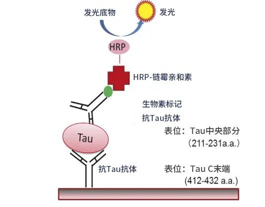 本品是通过结合Tau的中央部分识别抗体和C-末端识别抗体的双抗体夹心法ELISA。