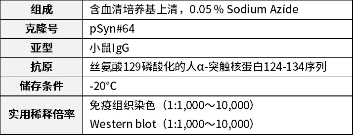 ◆抗磷酸化α-突触核蛋白,单克隆抗体(pSyn#64)