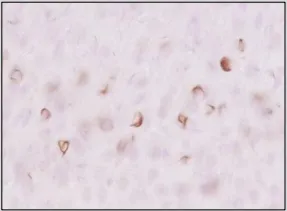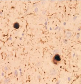 上图为使用本产品对路易体痴呆症的大脑切片进行免疫组织染色的图像。发生病变的路易小体被特异性染色。