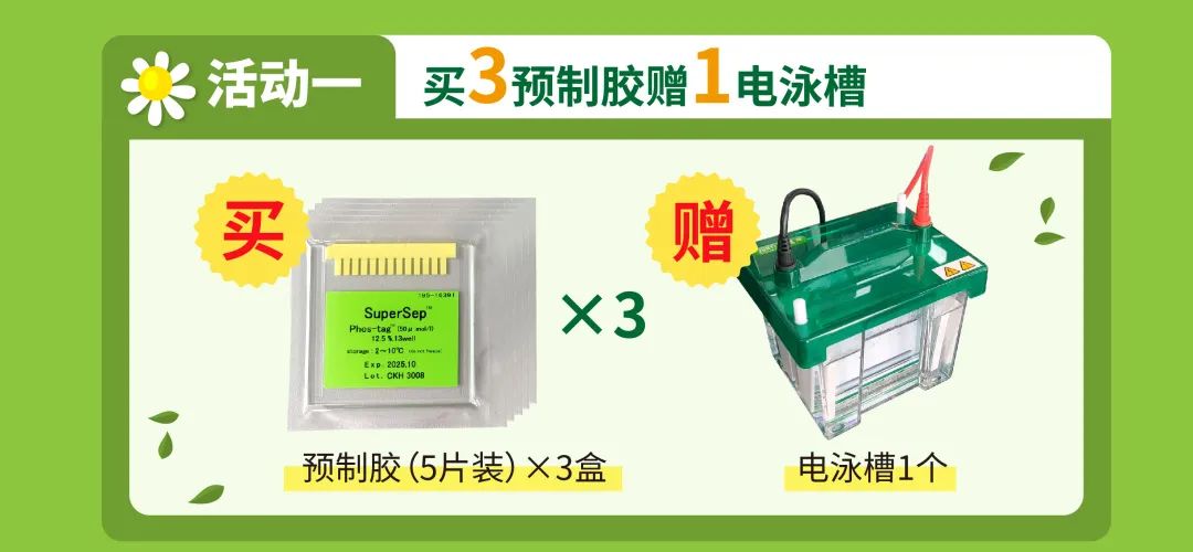购买3个SuperSep™ Phos-tag™预制胶,即可免费获得电泳槽1个