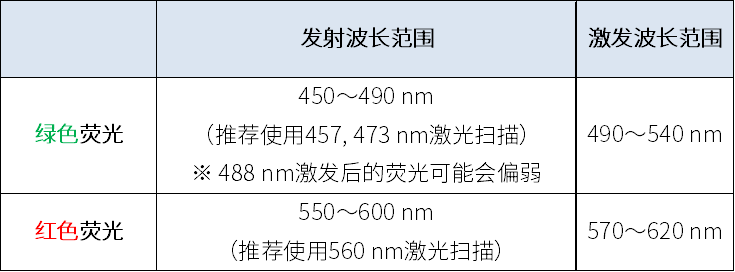 为了准确观察LipiDye®-M的环境响应性差异,需要确定最佳激发波长和荧光波长。推荐使用共聚焦激光扫描显微镜进行观察,实验时可参考下表范围。